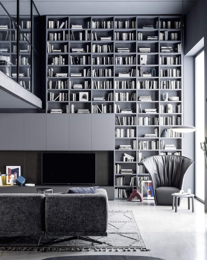Wall 30 bookcase system in grey matt lacquer