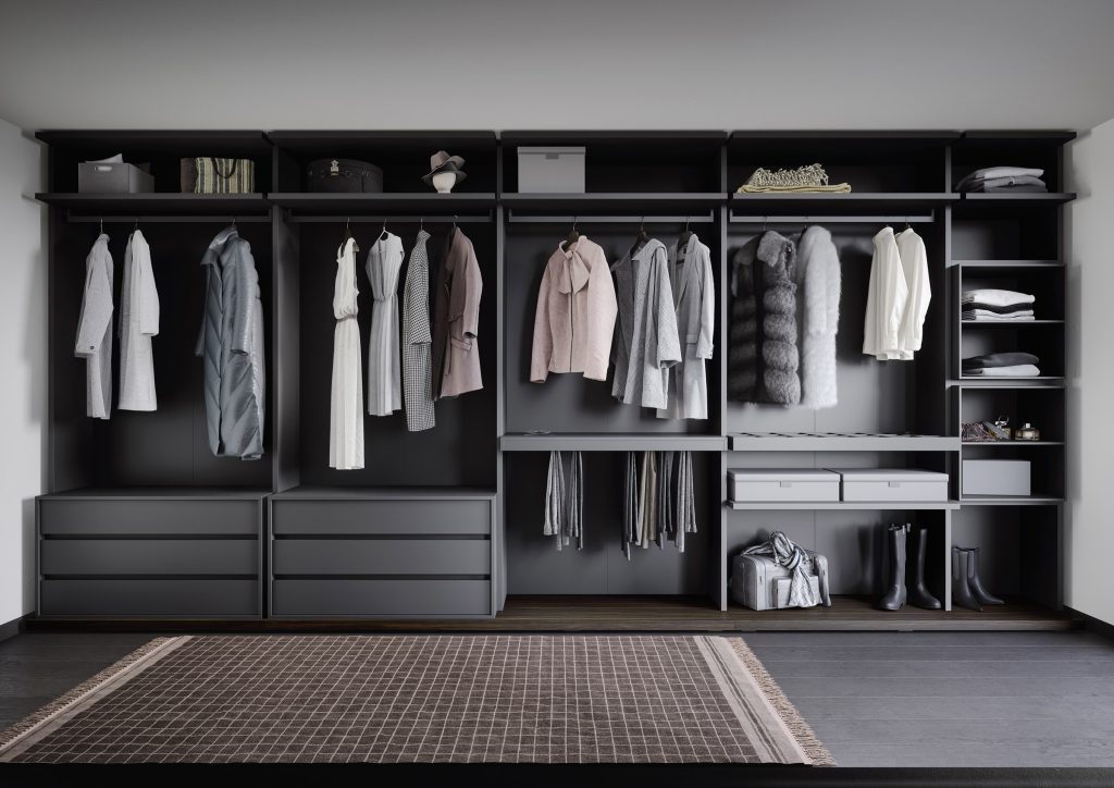 Ben closet system in dark grey finish