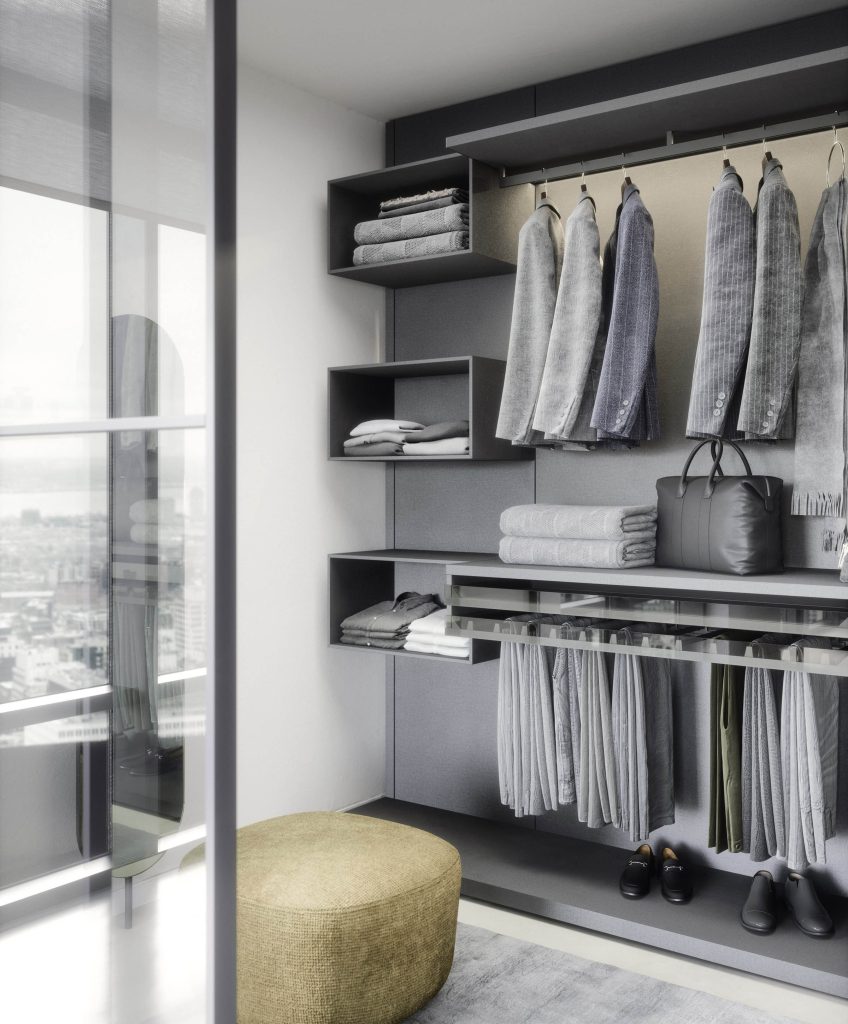 Every walk-in closet is made to order for you and fitted to your space. At LOMI’s studio in Dublin we use our skills to create the perfect contemporary design solution to meet your needs. We work with great Italian brands such as Novamobili and Giellesse. As the range of possibilities is huge, we recommend that you get in touch to discuss your bedroom project.