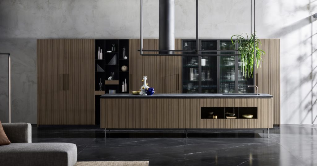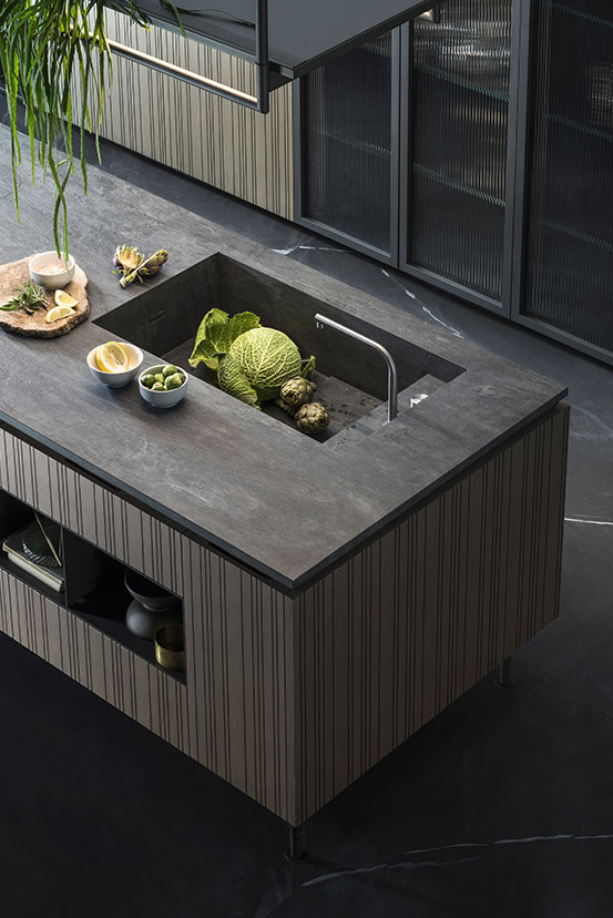The Rua kitchen is from our TM Italia Kitchens collection. A unique Italian kitchen creative vertical groove slatted fronts. Choose from doors in lacquer or woods finishes. Complete your kitchen with elegant handles and worktops in any material. Worktops are available in a huge range of materials including laminates, Fenix laminates, woods, ceramics, stainless steel, natural stones, and composite stones. The result is a practical modern kitchen completely unique to your space, requirements, and style.
