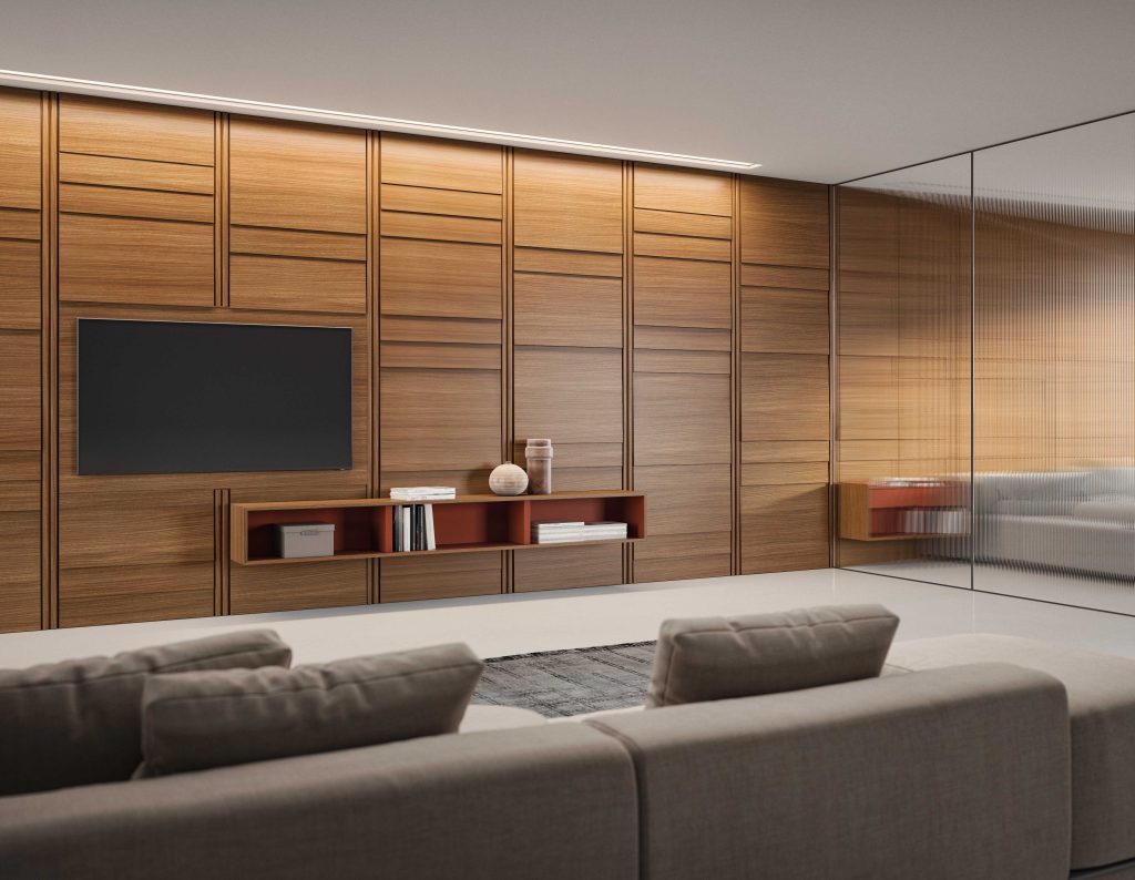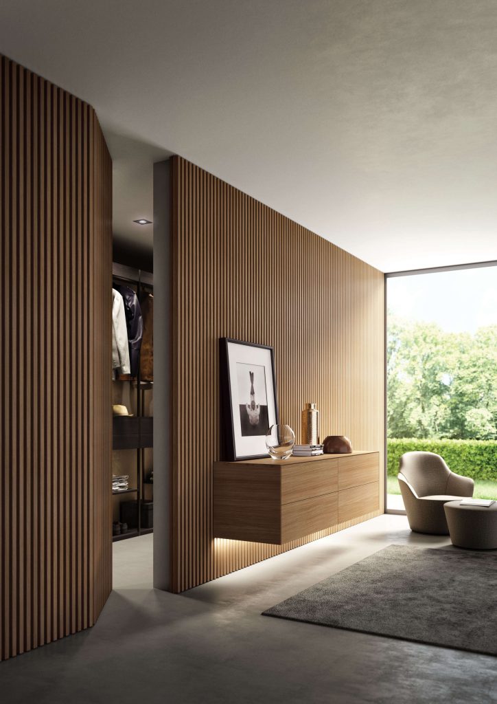 Luxury interiors are always enhanced by the addition of wall panelling. It adds warmth and style to any space. At LOMI we design and fit contemporary wall cladding to rooms of all shapes and sizes throughout Ireland. Choose from our extensive range of styles by our partner Res Italia including flat, slatted, grooved and ship lapped. Combine wall panels with integrated doors and storage solutions for a seamless wall design. Choose from natural woods, matt lacquer colours, ceramic and mirror finishes. The options are endless.