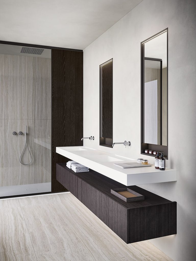 If you are seeking luxury fitted furniture for your bathroom then talk to LOMI. We work with Italian brand Casabath to offer you the finest quality contemporary bathroom furniture in Ireland. Choose from storage units with integrated wash basins, cabinets, containers, shower enclosures and mirrors with integrated lighting to create the perfect bathroom. The XS range with ribbed exterior design in a selection of oak and walnut finishes will complement any modern luxury interior.